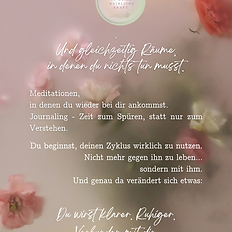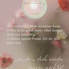 Du kannst deinen Zyklus kennen…und dich trotzdem immer wieder verlieren. In deinem Alltag. In deinen Gedanken. In dem Gefühl, irgendwie nicht ganz bei dir zu sein. Und vielleicht spürst du schon länger, dass es nicht darum geht, noch mehr zu wissen. Sondern darum, dich wieder zu spüren. Dieser Raum ist für dich, wenn du… -immer wieder Schmerzen in deinem Zyklus erlebst -wenn dich PMS begleitet – körperlich oder emotional. -wenn du dich in bestimmten Phasen erschöpft, gereizt oder nicht wirklich bei dir fühlst -wenn du merkst, dass dein Zyklus Einfluss auf dein ganzes Leben hat – du aber noch keinen Weg gefunden hast, damit umzugehen. -und wenn du bereit bist, nicht nur Symptome zu betrachten, sondern tiefer zu schauen. Was dich in Rückverbindung erwartet Rückverbindung ist ein zyklusbegleitender Online-Raum. Das bedeutet: - Du gehst durch deinen eigenen Zyklusund wirst genau dort begleitet, wo du gerade bist. -Du bekommst nicht nur Wissen. -Du bekommst Orientierung, -Werkzeuge und Räume zum Spüren. -Du wirst beginnen deinen Zyklus wirklich zu verstehen – auf körperlicher, hormoneller und energetischer Ebene -deine Gefühle einzuordnen,statt von ihnen überrollt zu werden. -deinem Körper wieder zu vertrauen, weil du erkennst, was er dir zeigt. -und deinen Alltag mehr und mehr an deinem eigenen Rhythmus auszurichten Das bekommst du konkret -2 Live-Circles im Frauenkreis Opening & Closing mit Wissen, Ritualen und Raum für dich -6 Masterclasses (Aufzeichnung) mit fundiertem Wissen zu Zyklus, Hormonen & Anatomie, inklusive der beliebten Alchemilla Masterclass → jederzeit abrufbar, passend zu deiner Zyklusphase -Wöchentliche Impulse entlang deines Zyklus -Akupressur -Kräuterbegleitung -Aromaanwendungen -Meditationen & Journaling für mehr Verbindung und inneres Spüren Ein Jahr Zugriff in deinem eigenen Rythmus. Genau jetzt ist der Moment, an dem du aufhörst zu suchen… und anfängst, dich wieder zu erinnern. Eine Ratenzahlung ist über PayPal Buchung möglich oder über die PKV.